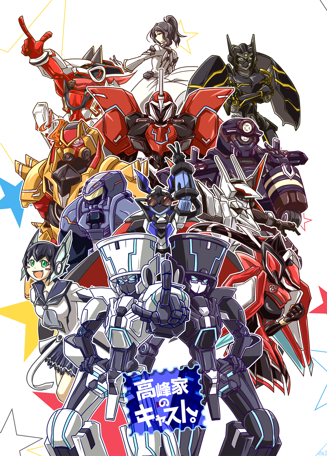 たかみーことたかみねさん宅のキャスト12人一気描き集合絵