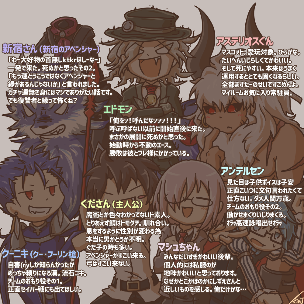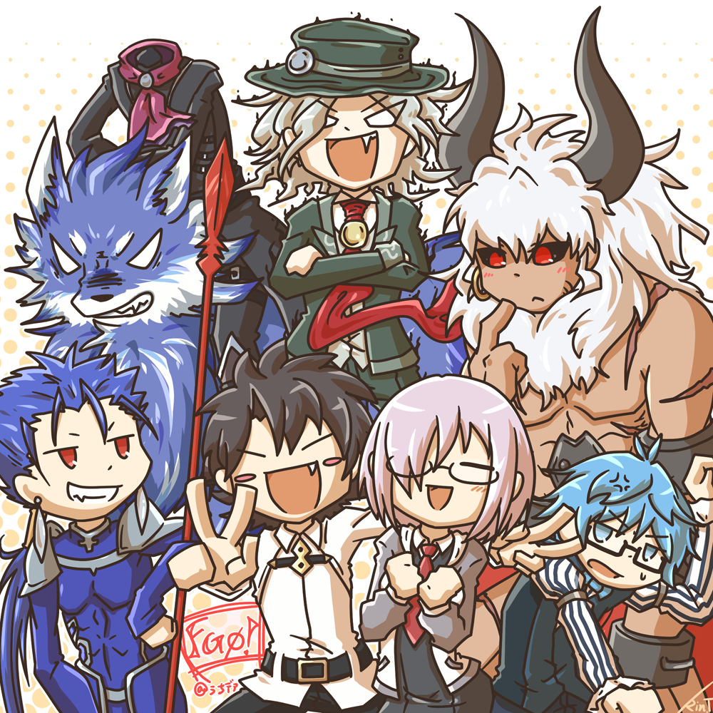 下段クー・フーリン(槍)、主人公、マシュちゃん、アンデルセン