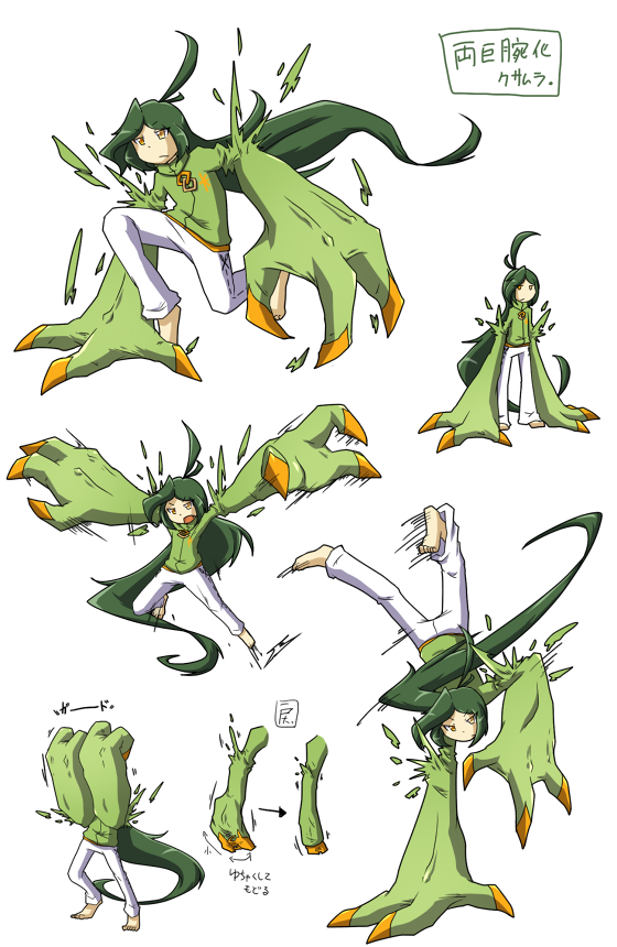 らくがき。両巨腕化クサムラ詰め。と、アクション練習。あいかわらず躍動感がいない感